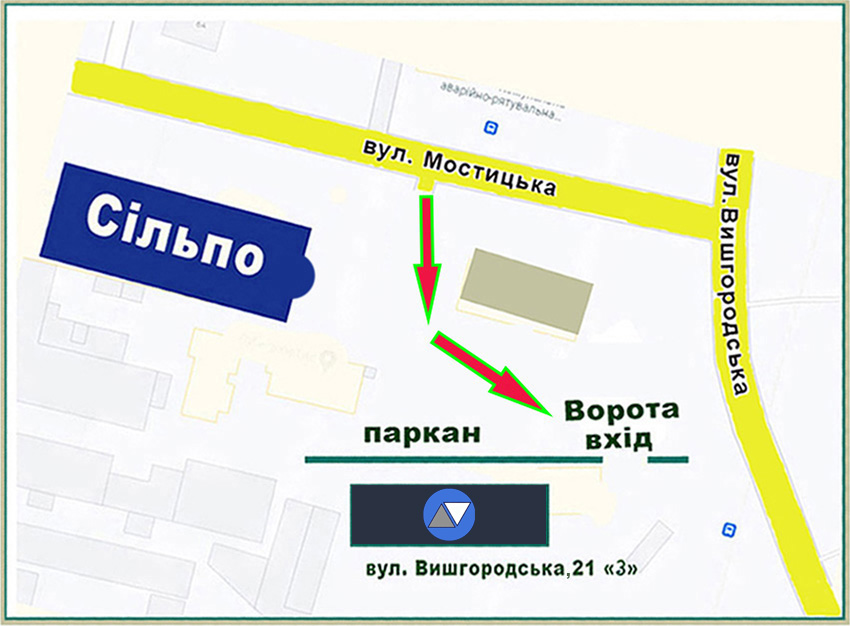 Зручне розташування. Окрема будівля, закрита територія, власне паркування. поруч із супермаркетом «Сільпо». Заїзд автомобілем з боку вул. Мостицька. Пішохідний прохід є також з боку вул. Вишгородської.